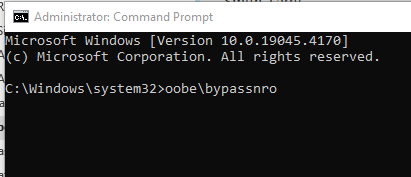3. Type OOBE\BYPASSNRO to disable the Internet connection requirement.