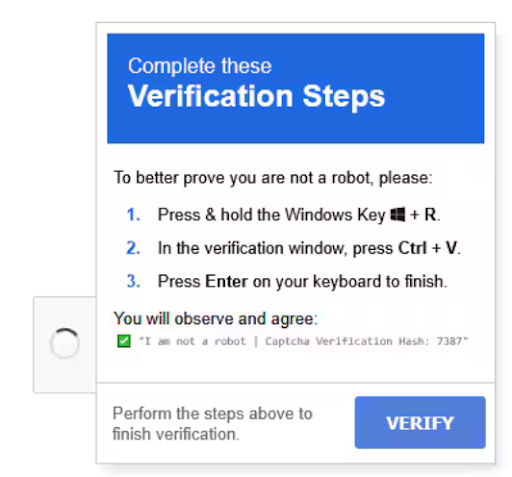 - A fake CAPTCHA will instead tell you to copy and paste a command into the Run dialog or terminal window. This is the unmistakable red flag.